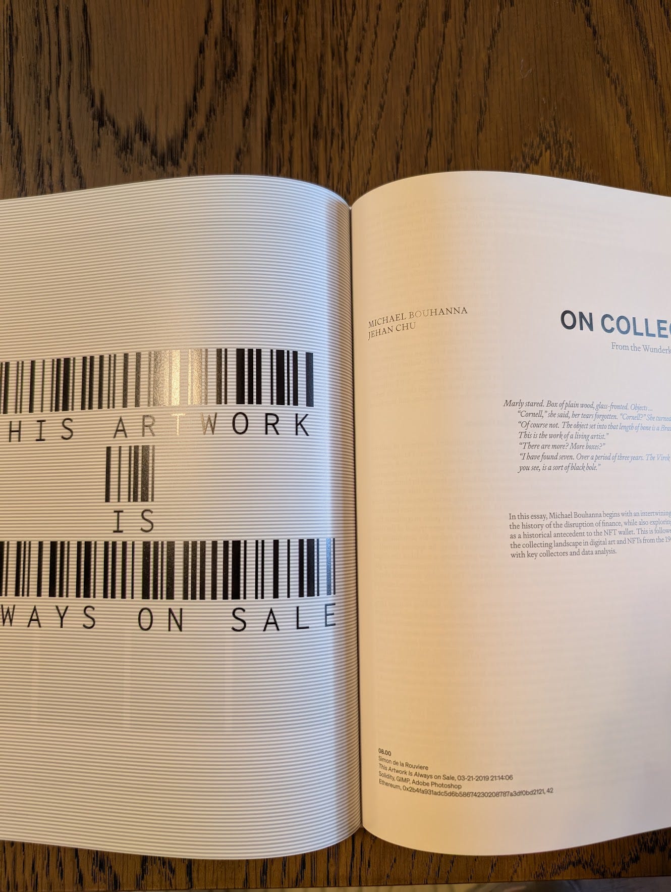 Received my copy of On NFTs and really proud to see “This Artwork Is Always On Sale” being featured. I really want to get back into my art practice (and coding for that matter). Hoping to do so once my novel is done!